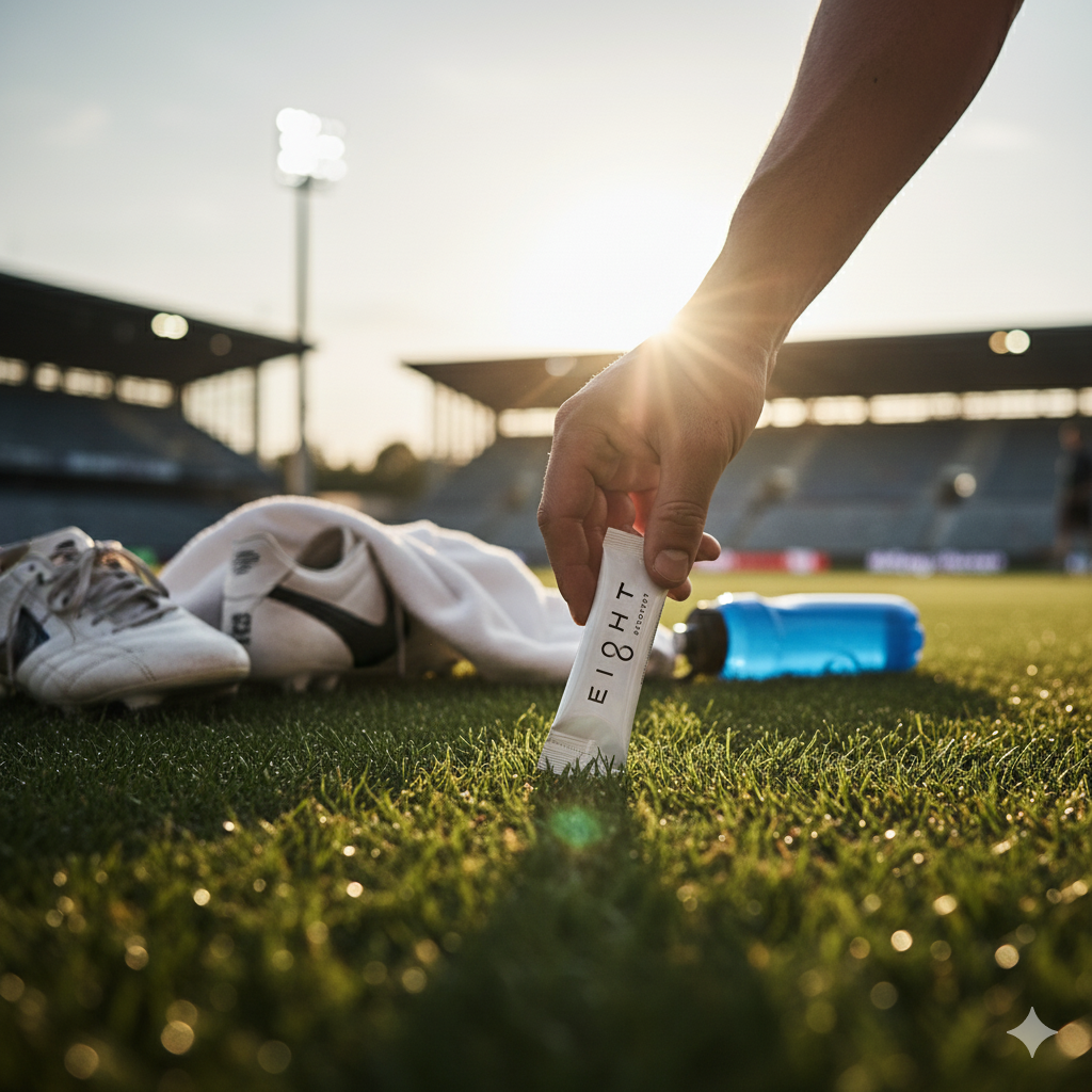 • Pre-Match: Take EI8HT Energy 15 minutes before kick-off. This sharpens focus and maximises your aerobic output for the crucial first half.